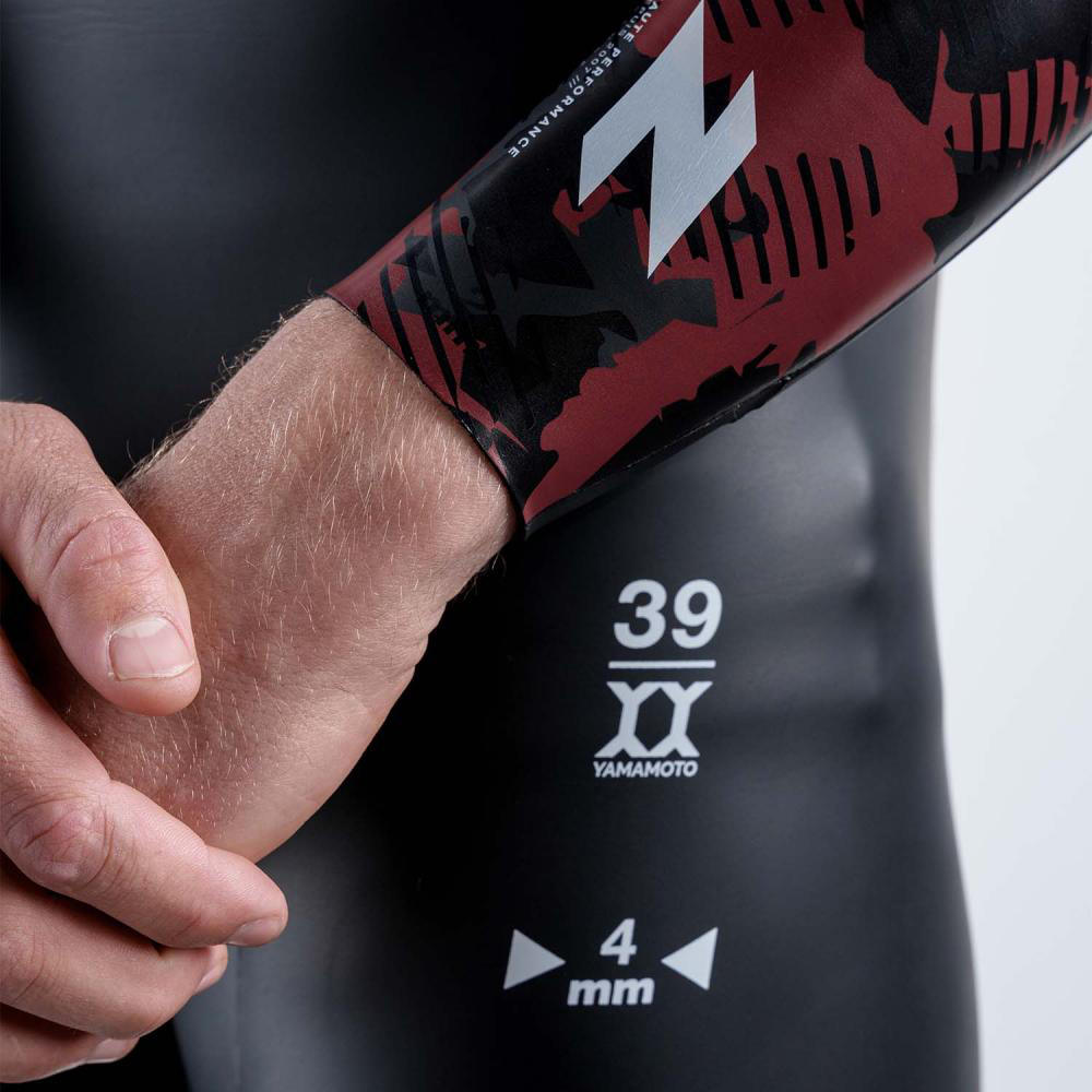 Questa muta è interamente realizzata in neoprene Yamamoto #38 e #39, i cui spessori variano tra 2 e 5 mm a seconda della parte del corpo.